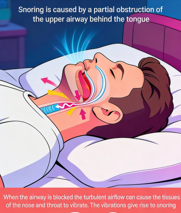 Snoring happens when your airway narrows during sleep, causing vibrations in the throat. This restriction of airflow leads to poor sleep quality and, over time, can contribute to serious health issues like high blood pressure, heart disease, and stroke. If left untreated, the long-term effects of snoring can be much worse than just a noisy night.